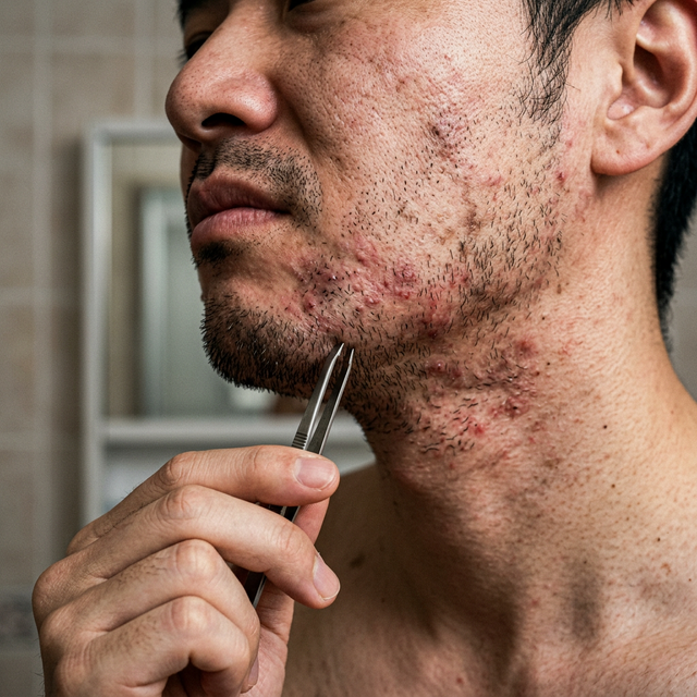 カミソリ負けの痛い肌、夕方には目立つ青髭。